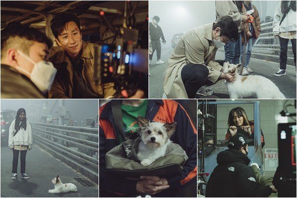 먼저 비하인드 스틸에는 붕괴 직전 공항대교에 갇힌 안보실 행정관 정원 역을 맡은 이선균이 극 중 고군분투를 펼치는 치열한 모습과는 반대로 따뜻한 미소를 띤 채 촬영 장면을 모니터하고 있는 모습이 이목을 집중시킨다. 신스틸러인 강아지 조디(핀아)를 향한 배우들의 다정한 모습 또한 눈길을 끈다. 눈 인사를 하며 조디를 반갑게 맞이하는 이선균부터 얌전히 대기하고 있는 조디를 기특하게 바라보고 있는 경민 역의 김수안, 조디에게 내 집 같은 편안함을 선사해 준 조박 역의 주지훈까지. 촬영장의 마스코트로 많은 사랑을 받은 조디의 활약상은 물론, 훈훈한 촬영 현장 분위기를 엿볼 수 있다.