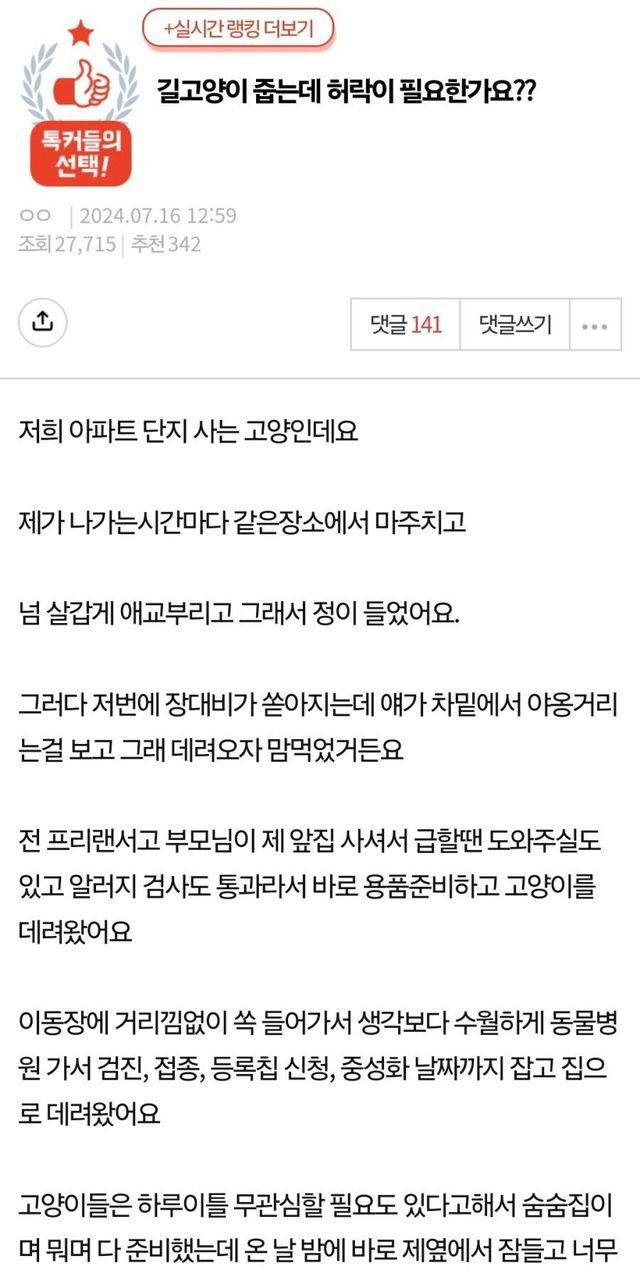 길고냥이 키우려면 허락받으라는 캣맘,,