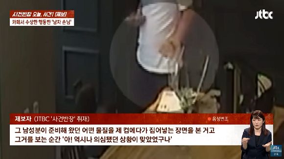 앞서 카페 음료 이물질 테러 사건은 이달 초 JTBC '사건반장'을 통해 알려졌다. 보도에 따르면 숙명여대 근처 한 카페에서 일한다는 제보자 A씨는 지난 2일 오후 한 남성 손님이 카페로 들어온 뒤 자신이 마시던 음료에 이물질을 탔다고 밝혔다.