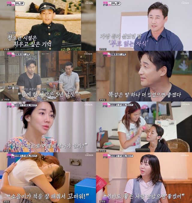 동료들과 자식 얘기를 나누던 중, 전노민은 “똑같은 딸이 한 명 더 있었으면 좋겠다, 한 번 살아 보게”라며 어릴 때 미국을 보내 실제로 5년도 채 함께 못 살아본 딸에 대해 애틋한 감정을 내비쳤다. 하지만 몸은 떨어져 있어도 마음은 가까워 연애, 결혼에 대해 솔직하게 대화를 나눌 정도로 살가운 부녀. “아빠 딸 봐서 참으면 안 될까?” 두 번째 이혼을 앞둔 전노민에게 딸이 전한 말에 그저 미안하다는 말 밖에는 할 수 없었던 가슴 뭉클했던 일화까지 선보였다.