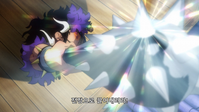 결국 한 눈 판 사이에 카이도가 오뎅의 뒤통수를 가격하며,
