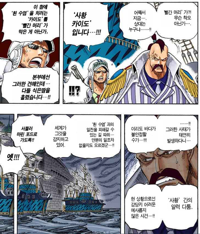 카이도는 흰 수염의 뒤를 치려 시도했지만 같은 사황인 빨간 머리