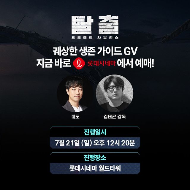 17일 배급사 CJ ENM 에 따르면 는 7월 21일 오후 12시 20분 롯데시네마 월드타워에서 영화 상영 후 진행되는 ‘궤상한 생존 가이드 GV’에 연출을 맡은 김태곤 감독과 유튜브 채널 ‘안될과학’의 운영자이자 탄탄한 팬덤을 보유한 과학 크리에이터 궤도가 참석한다.
