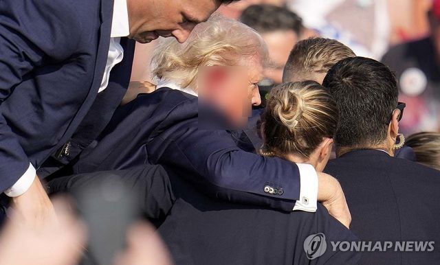 유세 중 발생한 총격에 긴급히 대피하는 트럼프 전 미국 대통령 / AP=연합뉴스