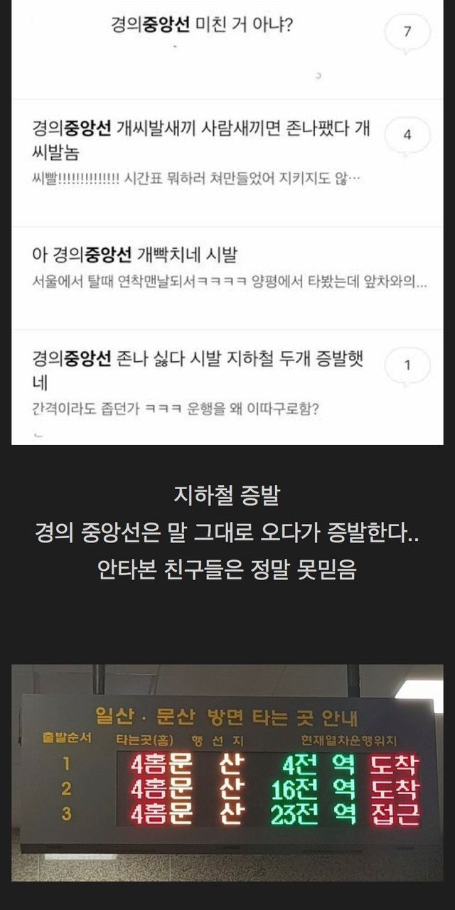급하면 다른 교통수단 이용해라 안내방송나오고