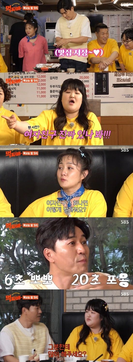 김종민은 '먹찌빠'에서 여자친구와 먹기 좋은 곳을 찾는가 하면 "이제 편하게 다 이야기하는 거냐"고 묻는 박나래에게 "아니다. 전 편하게 이야기한 적은 없다"고 받아쳤다.