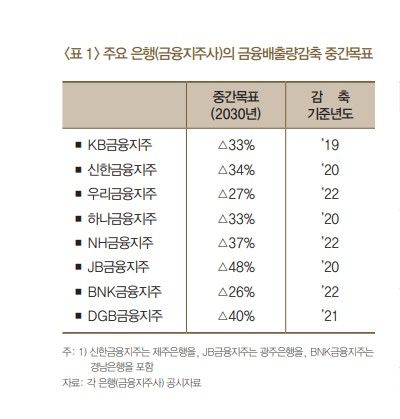 특히 높은 제조업 여신 비중, 중소기업 중심 여신 구조, 녹색금융 인프라 부족 등을 고려할 때 은행들이 온실가스 배출량을 중간목표 수준 이상으로 감축하는 데 상당한 어려움이 있을 것이란 설명이다.