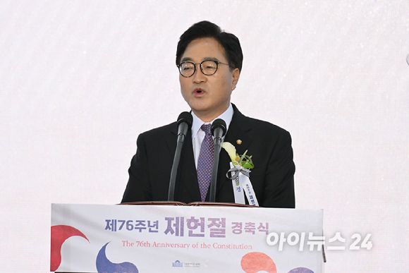 [아이뉴스24 김주훈 기자] 우원식 국회의장이 17일 제76주년 제헌절을 맞아 윤석열 대통령에게 개헌을 위한 대화를 공식 제안했다. 우 의장은 그동안 대통령 5년 단임제가 갈등 요소를 가진 만큼, 4년 중임제 필요성을 주장한 바 있다.