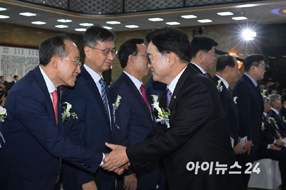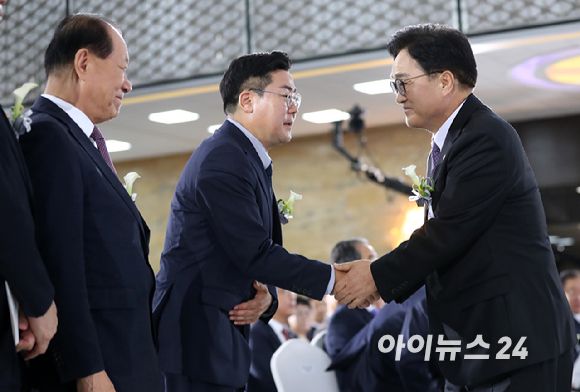 우 의장은 여야 갈등에 개원식이 무기한 연기된 것과 관련해 "온전히 정치의 부족함이고 제헌절을 맞도록 국회 개원식도 열지 못하고 있는 것에 국민의 질책을 달게 듣겠다"며 "'국민을 지키는 국회와 미래로 나아가는 국회'를 만들기 위해 새로워지겠다"고 약속했다.