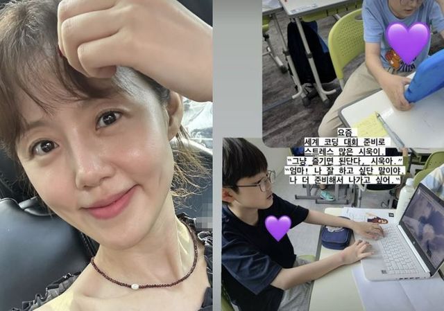 공개된 사진 속 이하정 아들 시욱은 세계 코딩 대회 출전을 위해 준비에 매진하고 있는 모습. 이하정은 그런 아들의 모습에 하트 이모티콘을 붙이며 애정을 드러냈다.