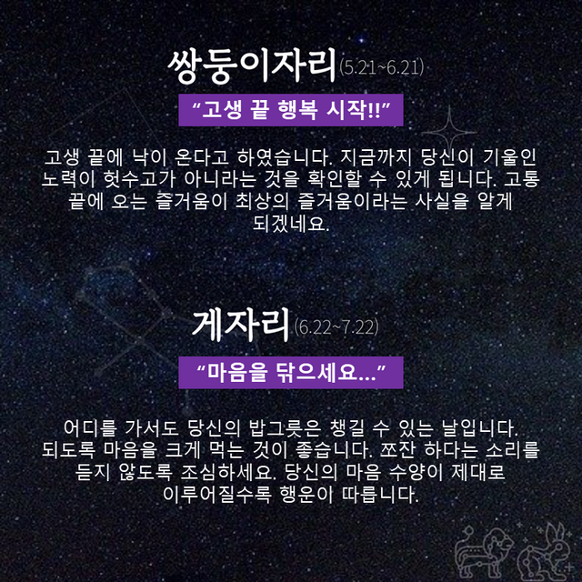 Δ 쌍둥이자리 : 고생 끝 행복 시작!!