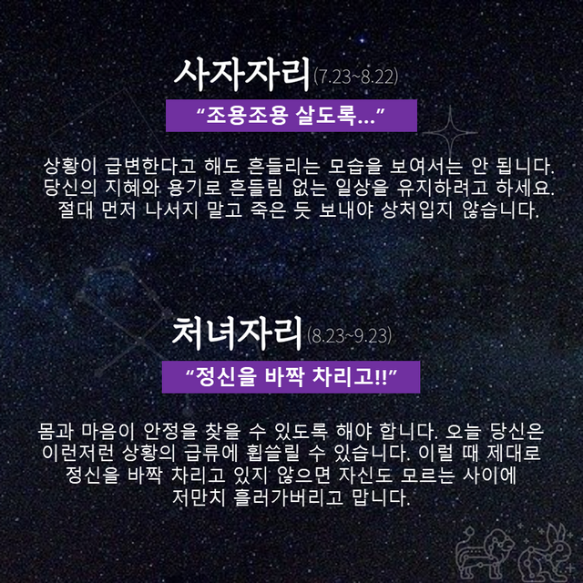 Δ 처녀자리 : 정신을 바짝 차리고!!