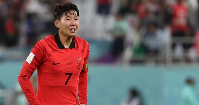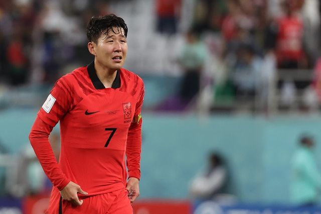 2022년 12월 3일 오전(한국 시각) 카타르 알라이얀의 에듀케이션 시티 스타디움에서 열린 2022 카타르 월드컵 조별리그 H조 3차전 대한민국과 포르투갈 경기에서 승리를 거두며 16강 진출에 성공한 대표팀 손흥민이 울먹이고 있다. / 연합뉴스