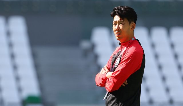2022 카타르 월드컵에 출전하는 대한민국 축구대표팀의 손흥민이 2022년 11월 21일 오전(현지 시각) 결전지인 카타르 알라이얀의 에듀케이션 시티 스타디움을 답사하던 중 관중석을 바라보고 있다. / 연합뉴스