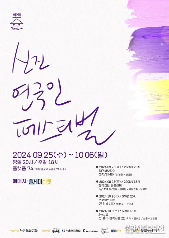 문화저널코리아 김영일 기자 | 올해로 9회를 맞이 '신진연극인페스티벌9'이 오는 7월 22일 오후 2시 플레이티켓에서 티켓 판매를 시작한다.