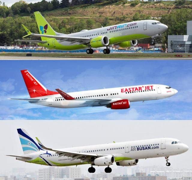 由上至下依次为真航空、易斯达航空和釜山航空【图片来源 网络】