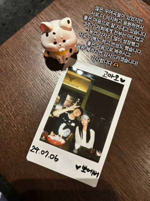 이어 "서로 응원하고 의지하고 조심스럽게 잘 지내고 있는 관계"라며 "둘 다 예쁘게 봐주시고 응원해 주시고 사랑해 주시면 감사하겠다"라고 답했다.