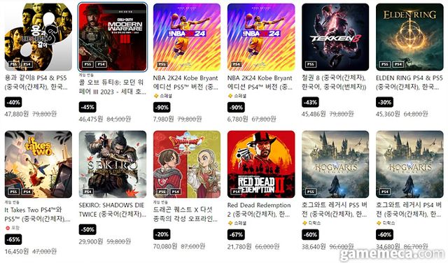 그 외에 75% 이상 큰 폭으로 할인되는 작품들도 다수다. NBA 2K24 코비 브라이언트 에디션(90%), 몬스터 헌터 라이즈(75%), 어쌔신 크리드: 발할라(75%), 어쌔신 크리드: 오디세이(80%) 배틀필드 2042(85%), 스타워즈 제다이: 오더의 몰락(75%), 드래곤볼 Z 카카로트(80%) 등이 저렴하게 판매된다.