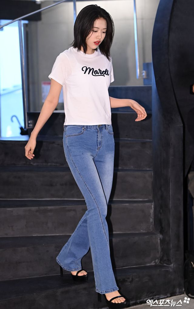 이날 팝업스토어를 방문한 아이브 안유진은 청바지에 흰티를 매치하여 이기적인 비율과 청순 매력을 뽐냈다.