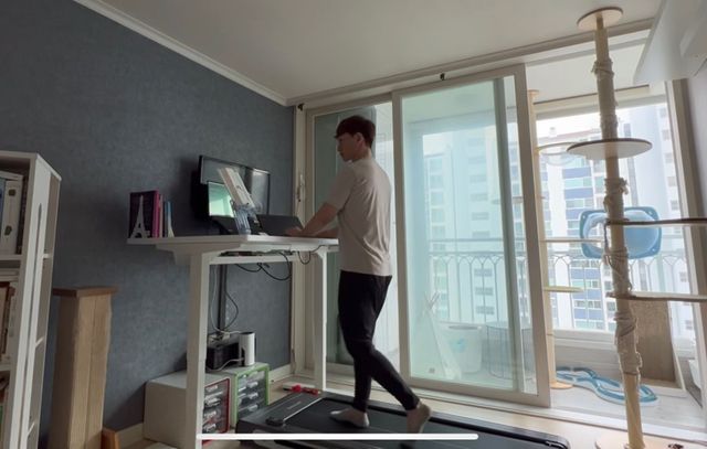 책상 아래 러닝머신을 두고 걸으며 글쓰는 책의 저자 현상필 작가와 이야기를 나눠보았다.