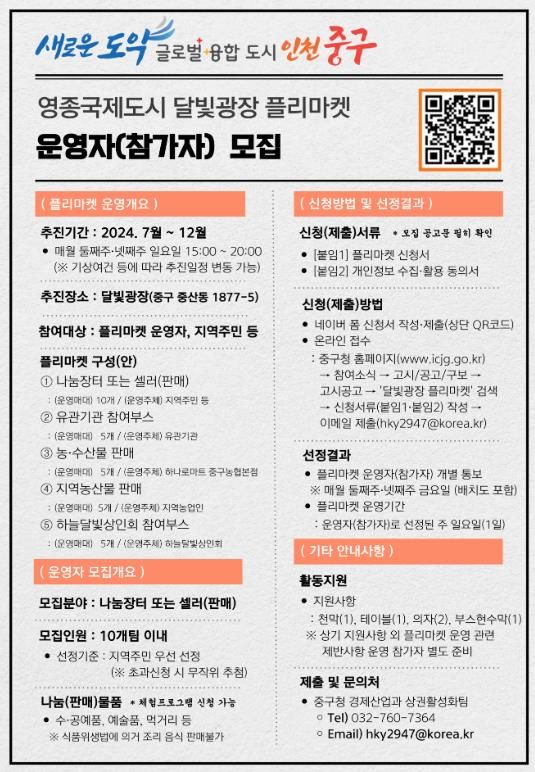 [파이낸셜경제=김영란 기자] 인천시 중구는 올해 7월부터 지역주민과 함께하는 특별한 소통·화합·나눔의 축제 ‘달빛광장 플리마켓’을 개최한다고 19일 밝혔다.