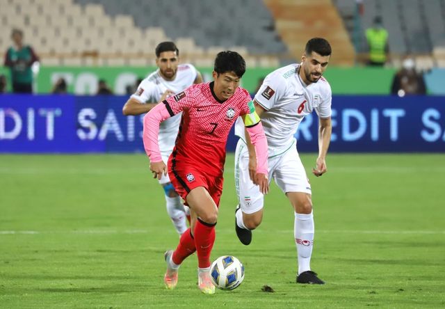 2021년 10월 12일(현지 시각) 이란 테헤란 아자디 스타디움에서 열린 2022 카타르월드컵 아시아최종예선 A조 4차전 대한민국 대 이란의 경기에서 손흥민이 이란 수비진을 피해 문전으로 쇄도하고 있다. / 연합뉴스