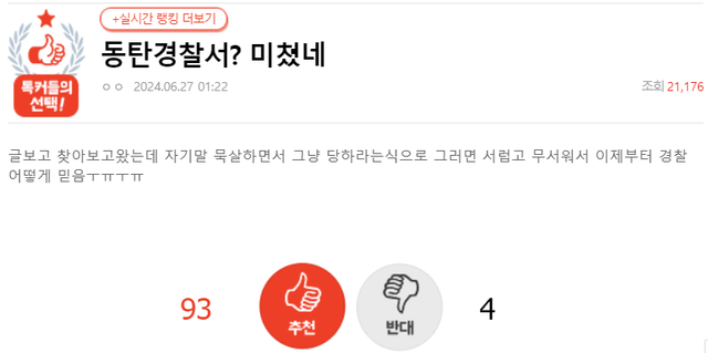 근데 댓글 갯수나 추천수 보니까 금방 내려갈 듯
