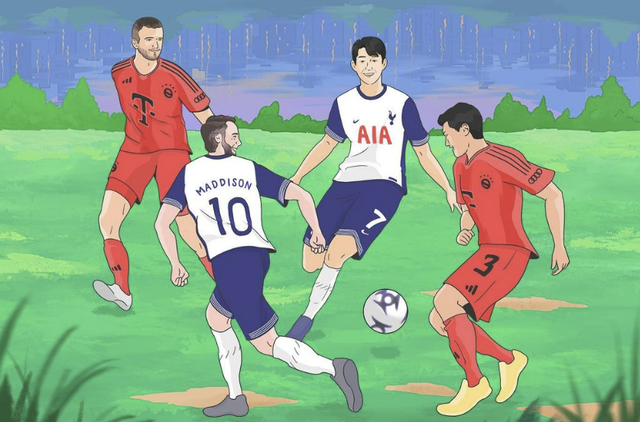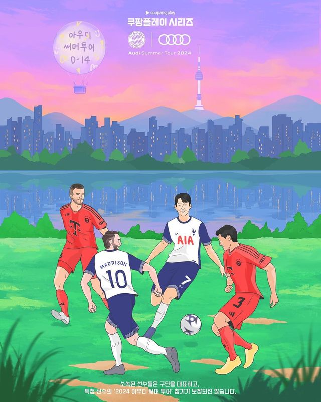 뮌헨이 20일(한국시간) 구단 공식 SNS 계정에 올린 사진을 보면 남산타워가 보이는 배경으로 한 잔디밭에서 토트넘 홋스퍼 손흥민, 제임스 매디슨과 뮌헨 김민재, 다이어가 볼을 갖고 노는 걸 확인할 수 있다.