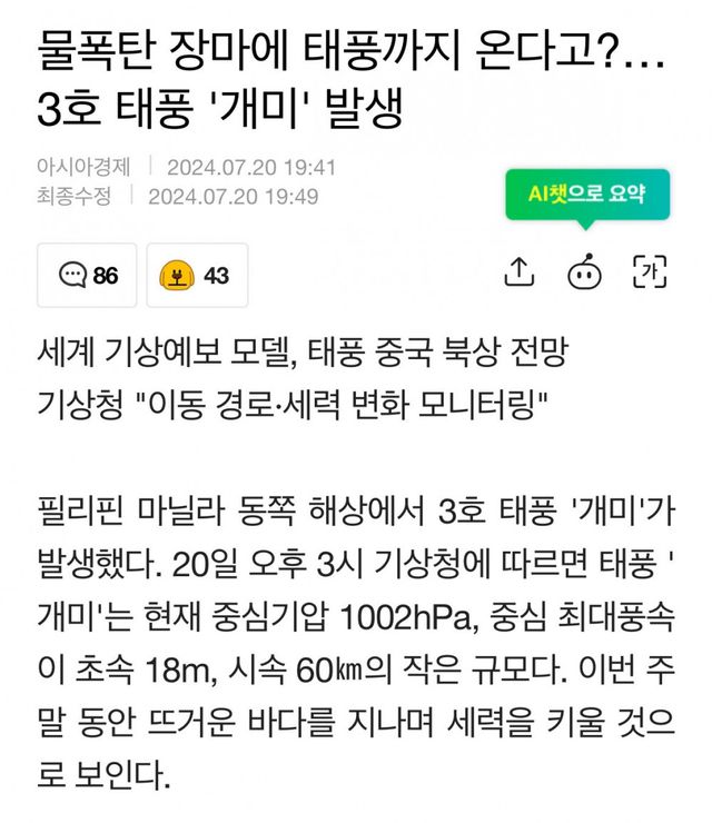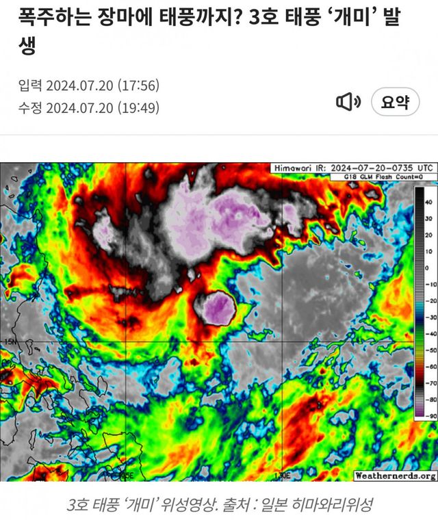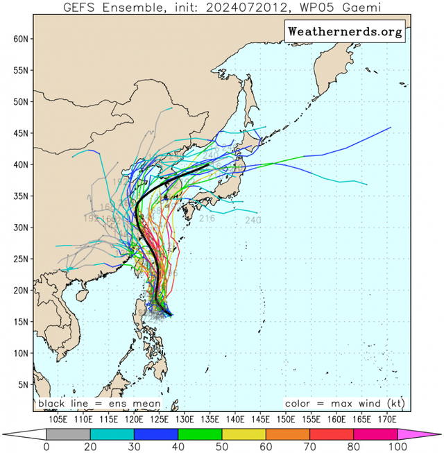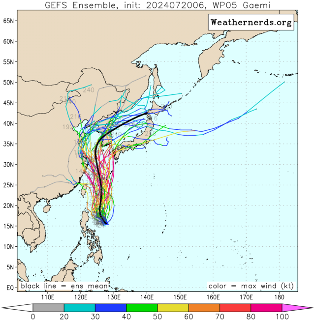 25일 이후 7월말 예측한 수많은 경로가 대한민국을 지나감