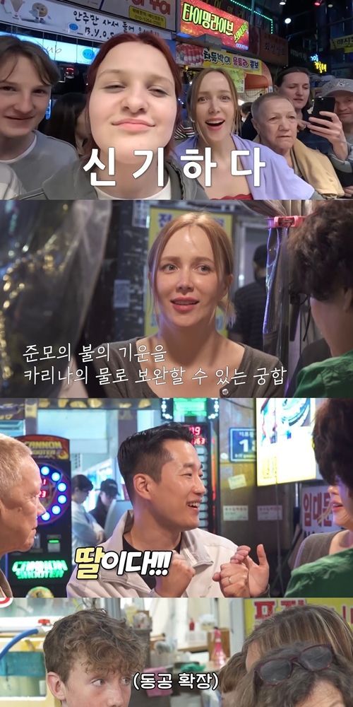 카잔 패밀리의 먹방은 부산 야시장으로 이어졌다. 주스 하나도 평범하지 않은 '야시장 클래스'에 패밀리의 눈이 반짝였다. 구워 먹는 마시멜로우 아이스크림과 최고 인기 디저트 탕후루가 'MZ 패밀리'를 사로잡았고, 어른들은 쫀득한 문어의 맛에 푹 빠졌다. 야시장 투어 후 안준모와 카리나는 궁합을 보러 갔다.