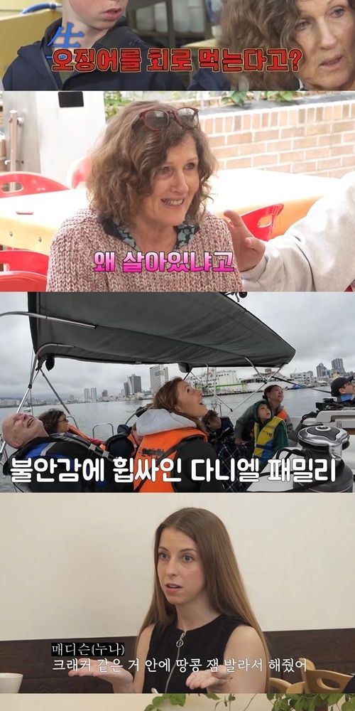 식사 후 패밀리는 요트 세일링을 위해 바다로 향했다. 다니엘은 "영국 집이 바다 쪽이긴 한데 배 타는 경험은 많이 못 해봤다. 너무 좋은 기회다"라며 소감을 전했다. 흔치 않은 경험에 패밀리 사이에 절로 노래가 흘러나왔고, 마가렛은 요트 끝으로 가 '타이타닉' 포즈를 취하며 들뜬 기분을 표현했다. 첫 번째 포인트인 빨간 다리에 요트가 가까워지자 선장은 "물에서 다리까지 높이와 요트 높이가 같아 부딪칠 수도 있다"라고 말했다. 순식간에 패밀리는 불안감에 휩싸였고, 요트는 아슬아슬하게 다리 밑으로 진입하기 시작했다. 위기에 빠진 다니엘 패밀리의 운명은 다음 주 방송에서 확인할 수 있다.