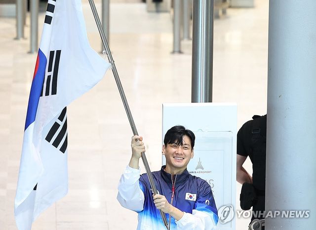 본단 기수로 선정된 펜싱 남자 사브르 대표팀 맏형 구본길(국민체육진흥공단)을 앞세우고 입국장에 들어선 이들은 한국시간 20일 오전 인천국제공항을 떠나 14시간 넘는 비행 끝에 파리에 입성했다.