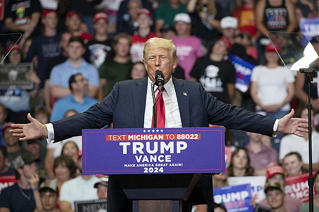 ▲ 도널드 트럼프 전 대통령이 지난 18일(현지시각) 2024년 대통령선거 공화당의 공식 후보로 지명된 이후 처음으로 미시간 주에서 유세를 가졌다. ⓒAFP=연합뉴스