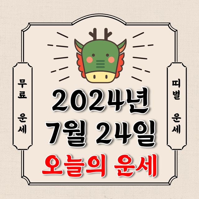 오늘의 운세 2024년 7월 24일 수요일 (음력 6월 19일 / 띠별 운세 / 생년월일 운세)에 대해 알아 보겠습니다.