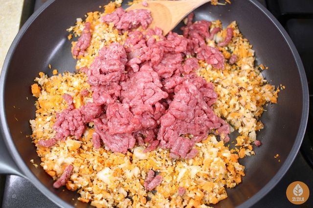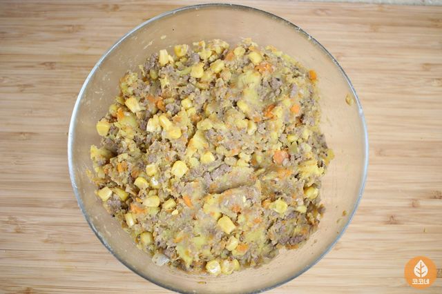 으깬 감자랑 한데 넣고 섞어주시고요.
