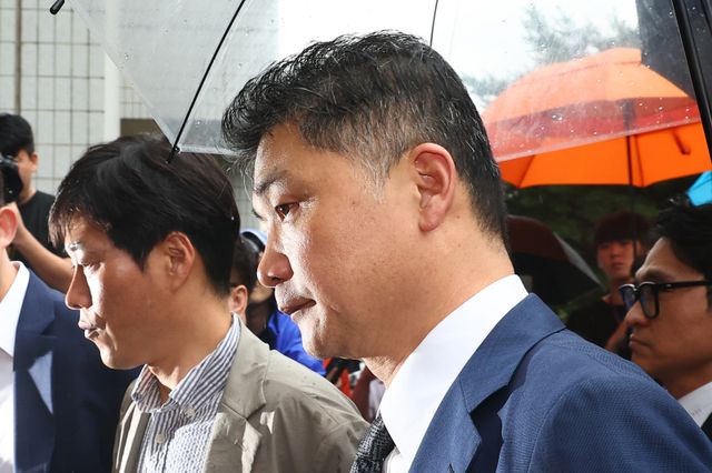 SM엔터테인먼트 시세 조종 의혹과 관련해 검찰 수사를 받아온 카카오 창업자 김범수 경영쇄신위원장이 지난 22일 서울 양천구 남부지방법원에서 구속 전 피의자 심문에 출석하고 있다. 연합뉴스