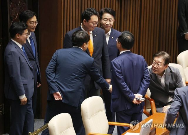 (서울=연합뉴스) 신준희 기자 = 4일 국회 본회의에서 더불어민주당 이재명 전 대표와 개혁신당 이준석 전 대표가 인사하고 있다. 2024.7.4