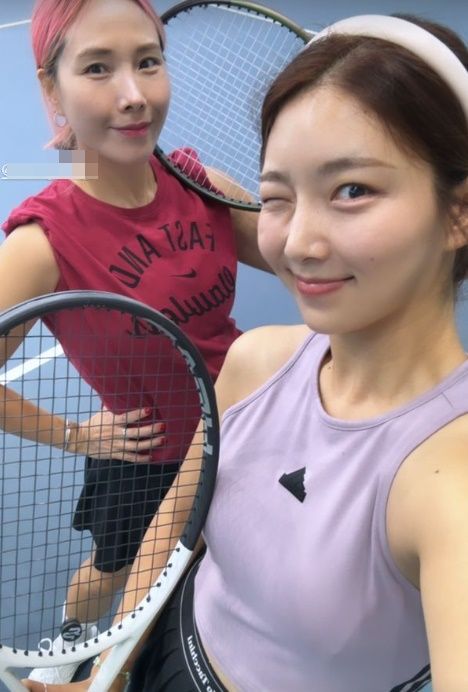 공개된 사진 속 신봉선은 우중 속에도 실내 테니스 장을 찾아 운동을 즐기고 있다. 이수정 아나운서와 함께 '테니스 여신'의 매혹적인 자태를 과시하고 있어 눈길을 끈다.