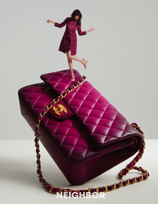 Chanel 그러데이션 효과를 준 푸크시아 컬러 클래식 11.12 백, 트위드 소재 코트와 스커트 셋업 모두 가격 미정.