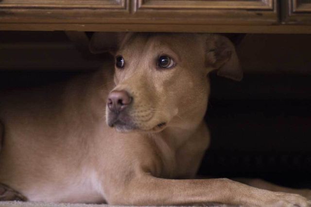 천둥·번개 소리에 겁을 먹은 강아지의 모습. / Patrick H-shutterstock.com