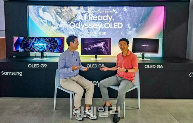 삼성전자 영상디스플레이(VD)사업부의 김태형(왼쪽) 프로와 김슬우 프로가 이데일리와 인터뷰하고 있다. (사진=삼성전자)