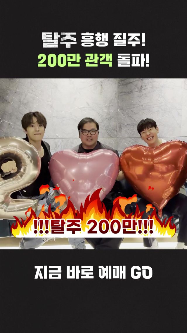 또한 ‘탈주’는 지난 18일부터 연속 6일째 전체 박스오피스 1위를 기록하고 있다. 이날 함께 공개된 200만 돌파 감사 영상은 이종필 감독과 이제훈, 구교환의 파이팅 넘치는 감사 인사가 담겨 훈훈한 웃음을 자아낸다.