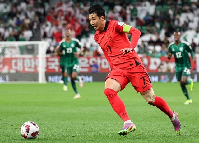 손흥민이 지난 1월 30일(현지 시각) 카타르 알라이얀 에듀케이션 시티 스타디움에서 열린 2023 아시아축구연맹(AFC) 카타르 아시안컵 16강전 대한민국과 사우디아라비아의 경기에서 돌파하고 있다. / 뉴스1