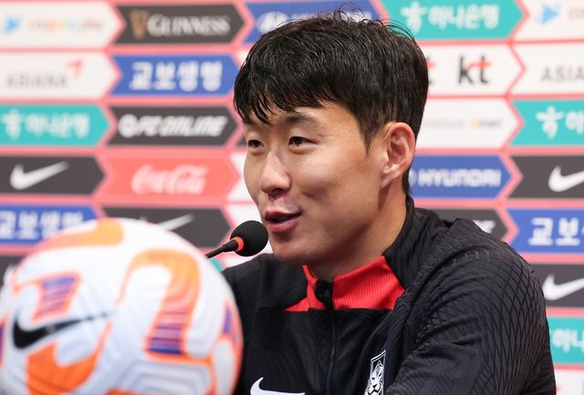 손흥민은 2023년 10월 12일 오후 경기도 파주 국가대표트레이닝센터(NFC)에서 열린 공식기자회견에서 취재진의 질문에 답하고 있다. / 뉴스1