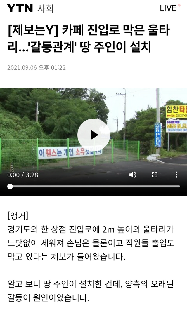 펜스로 길막시전 안쪽땅 맹지만들어 낼롬 할 생각으로 추정