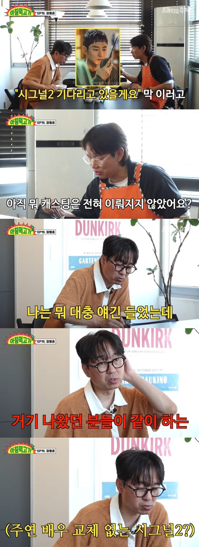 장성규는 "안 그래도 최근에 '시그널2' 집필 중이라고 기사를 본 것 같다. 이제훈 씨도 '캐스팅 기다리고 있을게요' 이러고. 캐스팅에 대해선 아직 진행된 바가 없냐"라고 물었다.