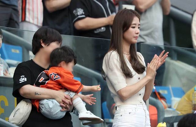 남편 류현진 응원하는 배지현. 한화 류현진의 부인 배지현 아나운서가 지난 6월 12일 오후 서울 송파구 잠실야구장에서 열린 '2024 신한 SOL 뱅크 KBO리그' 한화 이글스와 두산 베어스의 경기에서 박수치고 있다. / 뉴스1