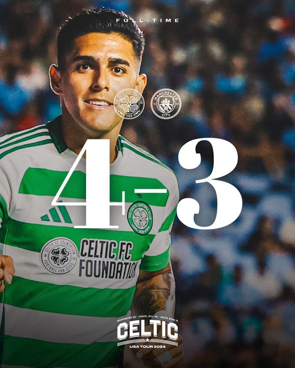 24일(한국시간) 미국 노스캐롤라이나의 케난 메모리얼 스타디움에서 프리시즌 친선경기를 치른 셀틱이 맨시티에 4-3 승리를 거뒀다. 셀틱은 오는 28일 첼시와 친선경기를 가진 뒤 8월 5일 리그 개막에 돌입한다.