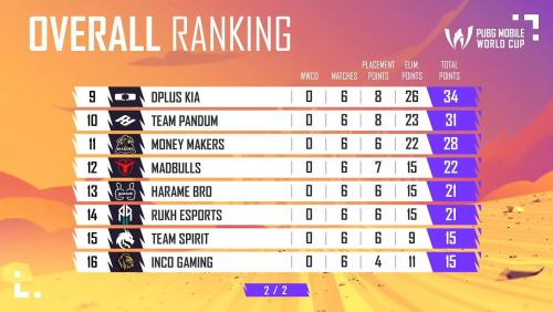 DRX는 그룹 스테이지 24개 팀 중 최하위 점수로 뼈아팠다. 순위 포인트와 킬 포인트는 각각 5점, 18점을 기록하며 아쉬운 경기력을 보였다.