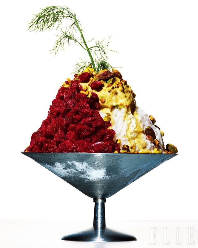 요즘 대세 피스타치오가 라즈베리를 만났다. ‘라즈베리 피스타치오 빙수’는 우유 얼음 위에 수제 피스타치오 소스와 냉동 라즈베리, 피스타치오 원물과 분태, 향긋한 딜을 꽂아 마무리한다. 부드러운 우유 얼음에 오독오독한 식감이 더해진 빙수는 고소하면서 상큼하다. 1만5천원,